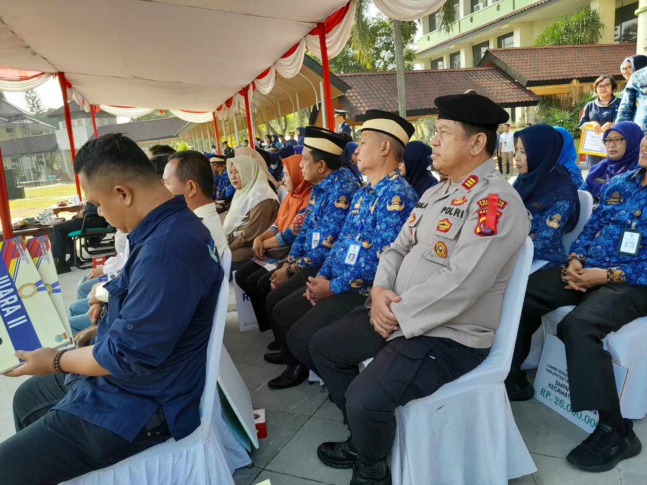 Selama upacara, juga dilakukan pemberian penghargaan di bidang transportasi, penyerahan SK Pensiun dan JHT, serta penghargaan untuk juara sekolah bersih dan sehat, serta juara lomba kampung hijau dan ber-PHBS.