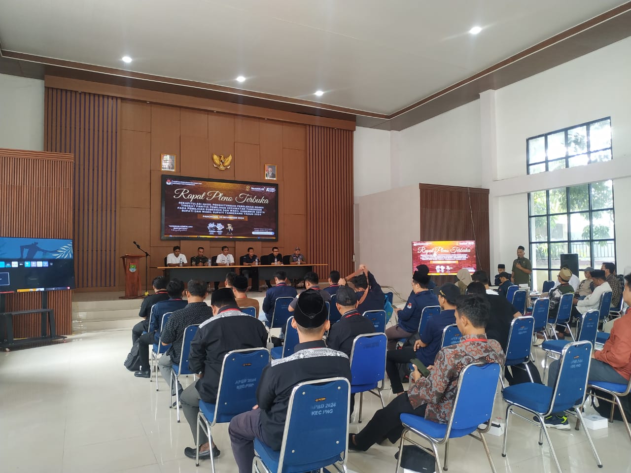 LIPUTAN7 AKTUAL, TANGERANG, – Kapolsek Panongan AKP RM Wisnu Bramantyo STrK., S.IK.Msc.Eng menghadiri rapat pleno terbuka untuk rekapitulasi penghitungan suara Pilkada 2024 di tingkat Kecamatan Panongan, yang diadakan oleh PPK Panongan di Aula Kantor PPK Kecamatan Panongan, Kabupaten Tangerang, pada Jumat siang (29/11/2024).