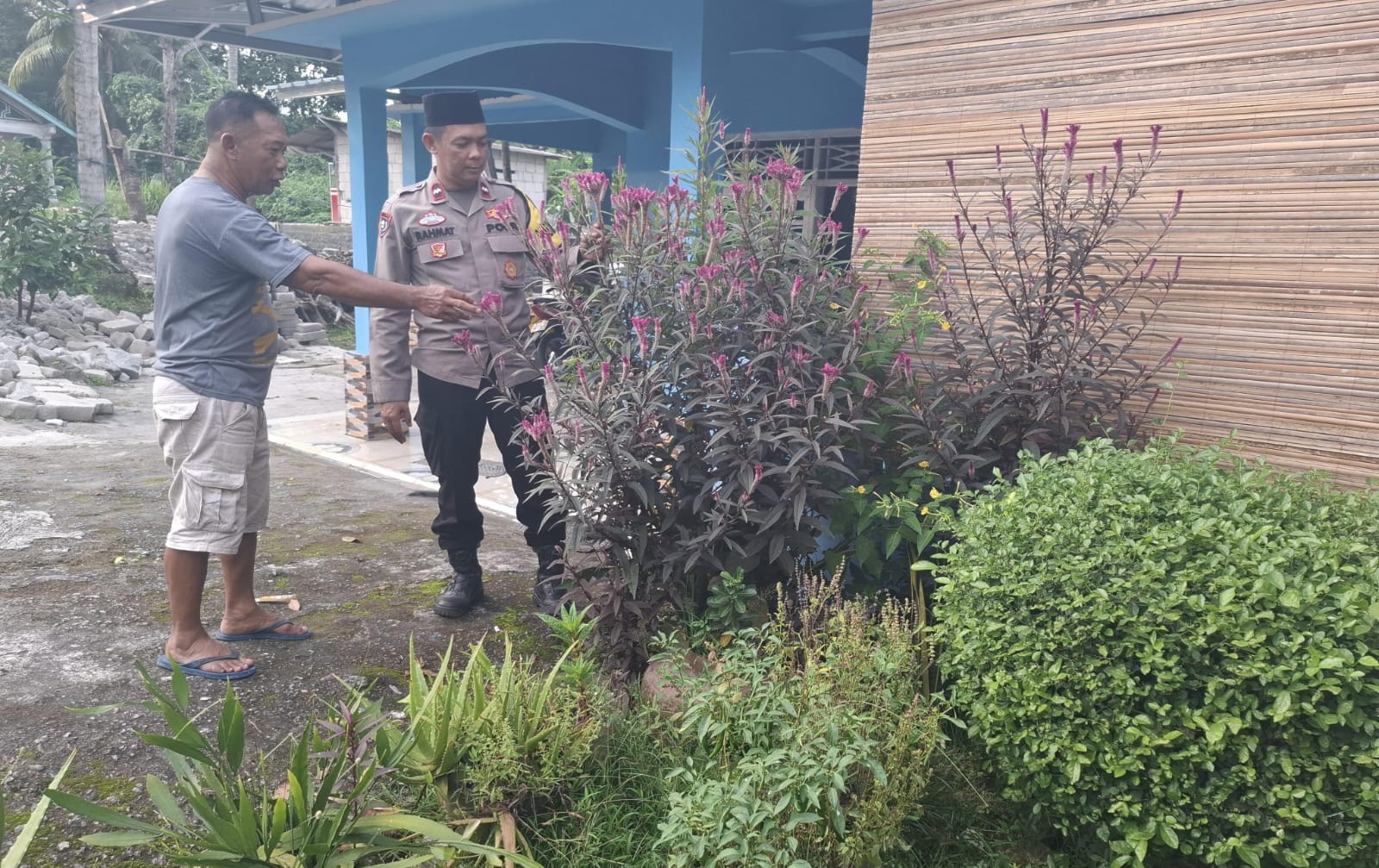 Aipda Rahmat Bhabinkamtibmas Polsek Balaraja Ajak Warga Binaan Melakukan Pemanfaatan Lahan Pekarangan Rumah Bidang Ketahanan Pangan (Tanaman Hias)