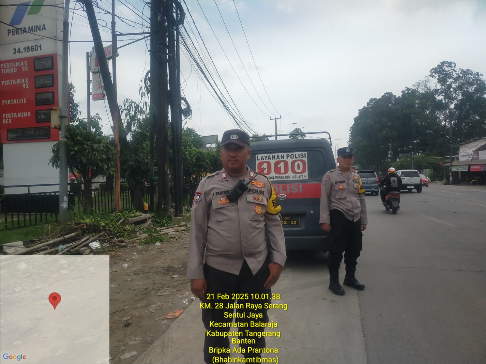 Bhabinkamtibmas Polsek Balaraja melaksanakan Patroli Preventif Wilayah Desa Sentul pada siang hari guna antisipasi Guantibmas di Wilayah Jalan Raya Serang Desa Sentul Wilayah Hukum Polsek Balaraja Poresta Tangerang. Jum’at (21/02/2025).