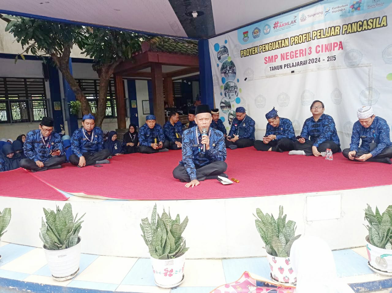 Dr. H.Dulhadi.S.Pd,.M.Pd. Kepala Satuan SMPN 3 Cikupa Tangerang. Menyampaikan Dengan kegiatan Penutupan ini dalam pelaksanaan ini juga melibatkan Orang Tua/ wali siswa, Wali Kelas, Guru Pengampu Mata Pelajaran Pendidikan Agama Islam dan Budi Pekerti, Para Wakasek dan PKS, Kepala Satuan Pendidikan maupun Pendamping Satuan Pendidikan. Dalam rangka mewujudkan peserta didik yang beriman, bertakwa kepada Allah SWT. berakhlak mulia, dan taat beribadah, pelaksanaan pembelajaran Pendidikan Agama Islam dan Budi Pekerti (PAIS).kata