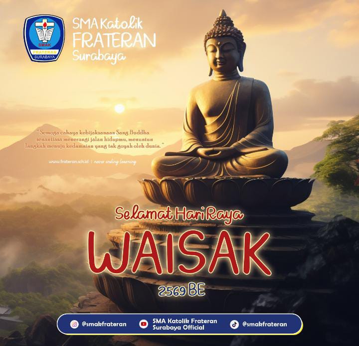 SURABAYA – Fr. William Satel Sura BHK S.pd. MM selaku kepala SMA Katolik Frateran Surabaya beserta guru dan staf mengucapkan selamat Hari Raya Waisak 2025 dengan tema” Semoga Cahaya Kebijaksanaan Sang Buddha Senantiasa Menerangi Jalan Hidupmu, Menuntun Langkah Kedamaian Yang Tak Goyah Oleh Dunia”. Hari raya waisak merupakan salah satu perayaan penting bagi umat Buddha dan diperingati untuk mengenang tiga peristiwa besar dalam kehidupan Siddhartha Gautama yaitu kelahiran, pencapaian pencerahan, dan wafatnya.