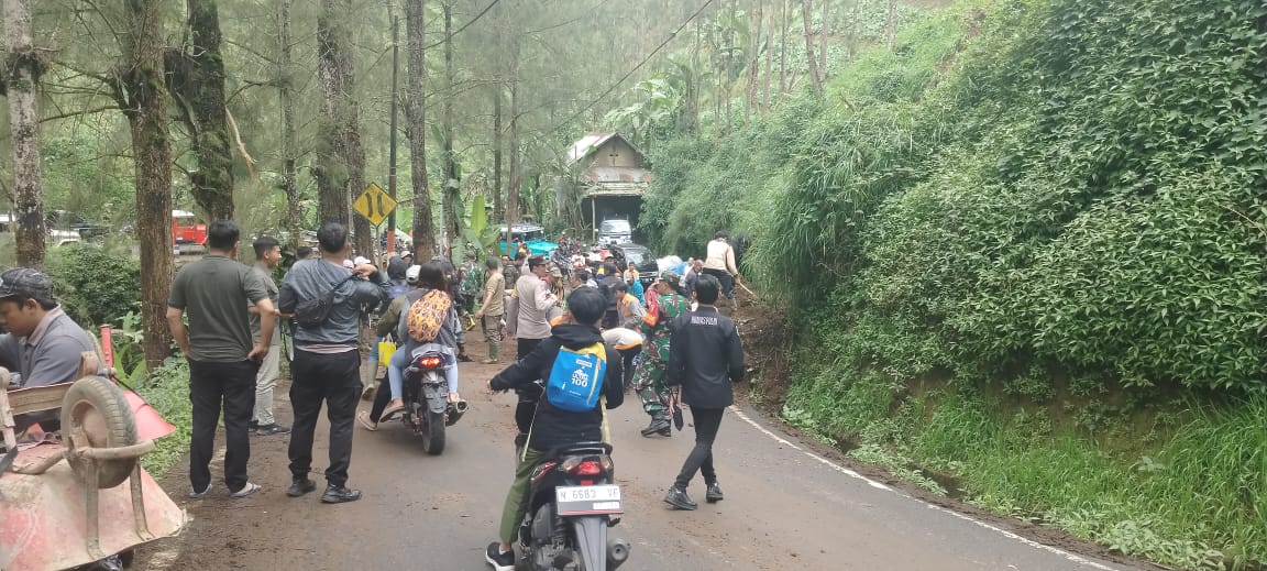 Tosari, liputan7aktual.com – Sinergi antara Polsek Tosari, TNI, pemerintahan kecamatan, dan masyarakat membuahkan hasil dalam penanganan bencana longsor yang terjadi di wilayah Tosari, Kabupaten Pasuruan, Kamis (15/5/2025). Longsor yang dipicu hujan deras semalaman menyebabkan akses kendaraan dari arah selatan Pasir menuju wilayah Kabare sempat terhambat dan menimbulkan kemacetan, terutama kendaraan roda dua yang tengah melaksanakan perjalanan wisata menuju Gunung Bromo melalui jalur Romo Tengger.