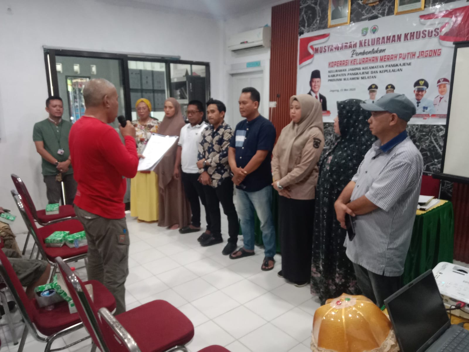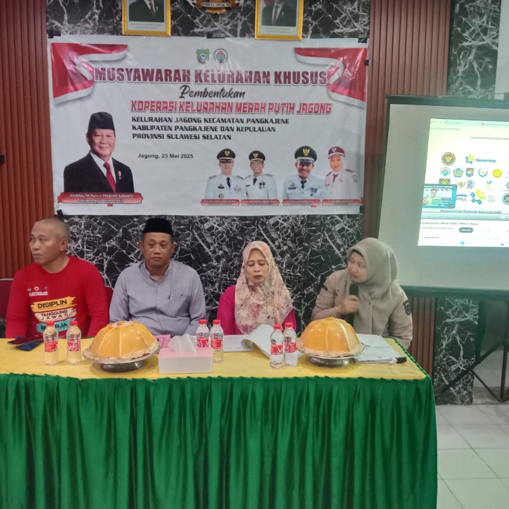 Pembentukan Koperasi Merah Putih, Bertempat Di Aula Kantor Kelurahan Jagong Kecamatan Pangkajene Kabupaten Pangkep, Jum’at, 23 Mei 2025.