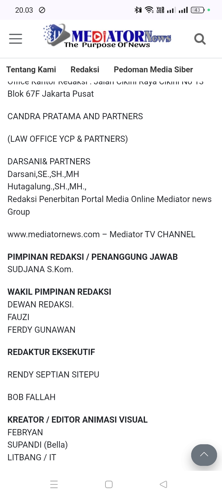 Liputan7aktual.com, Jakarta – Umar Fauzi, pimpinan perusahaan media online Pristiwa News (Pristiwa TV Channel) mengecam keras atas tindakan salah satu media online “Mediator News” yang mencatut namanya di dalam box redaksi, bahkan meniru persis semua jajaran nama-nama anggota yang berada didalam naungan PristiwaNews ke dalam box redaksi “Mediator News”. (29/05/2025)