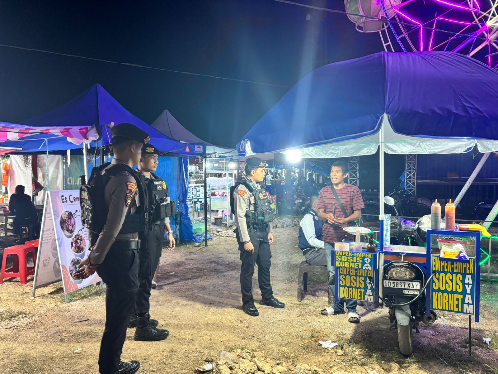 Patroli dimulai pukul 19.30 WITA dengan menyasar area parkir, lapak pedagang, wahana permainan, serta jalur keluar-masuk pengunjung. Personel Sat Samapta juga menyampaikan imbauan kamtibmas kepada warga agar selalu waspada terhadap tindak kejahatan jalanan, menjaga barang bawaan, serta mematuhi protokol keselamatan berlalu lintas.