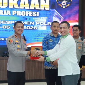GRESIK – Semangat pengabdian dan profesionalisme terpancar dari kegiatan Bakti Sosial dan Kuliah Kerja Profesi (KKP) yang dilaksanakan oleh para Peserta Didik Sekolah Staf dan Pimpinan Menengah (Sespimmen) Polri Dikreg Ke-65 Tahun Anggaran 2025. Kegiatan ini digelar di Rupatama Sarja Arya Racana Polres Gresik dan dihadiri oleh sejumlah pejabat tinggi Polri, Pemerintah Kabupaten Gresik, serta tokoh masyarakat dan agama.Gresik (02-06-2025)