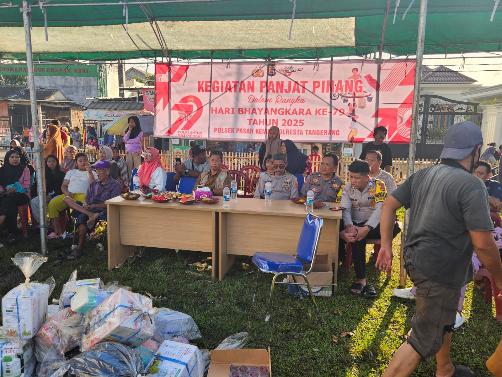 Kab. Tangerang – Dalam rangka memeriahkan HUT Bhayangkara ke-79, Polsek Pasar Kemis Polresta Tangerang Polda Banten, menggelar perayaan Lomba Panjat Pinang, di lapangan Oktober Desa Sukaharja Kec. Sindang Jaya Kab. Tangerang, Senin, (1/7/2025).