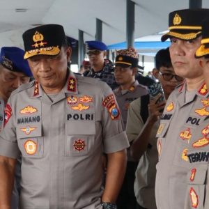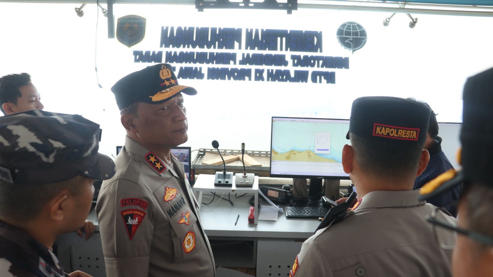 SURABAYA – Kapolda Jawa Timur Irjen Pol Nanang Avianto bersama Pejabat Utama (PJU) Polda Jatim turun langsung melakukan pemantauan udara ke lokasi pencarian korban tenggelamnya Kapal Motor (KM) Tunu Pratama Jaya di perairan Selat Bali, Kamis (3/6).