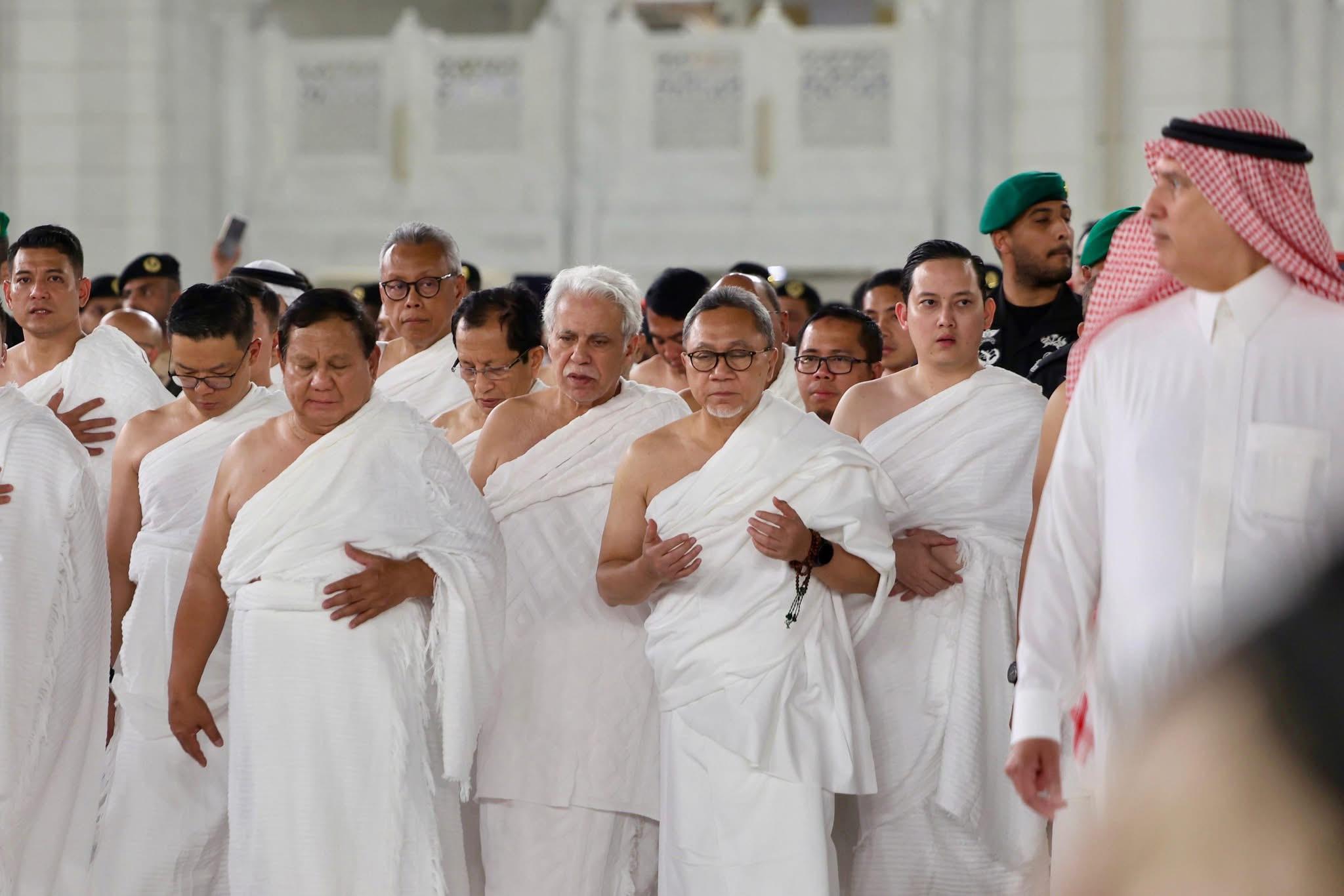 Presiden Prabowo didampingi sejumlah pejabat tinggi negara dalam pelaksanaan ibadah umrah ini, di antaranya Menteri Koordinator Bidang Pangan Zulkifli Hasan, Menteri Luar Negeri Sugiono, Menteri Agama Nasaruddin Umar, Menteri Investasi dan Hilirisasi Rosan Roeslani, Sekretaris Kabinet Teddy Indra Wijaya, serta Kepala Badan Pengelola Haji (BPH) M. Irfan Yusuf. ( Chemal Rusanda).
