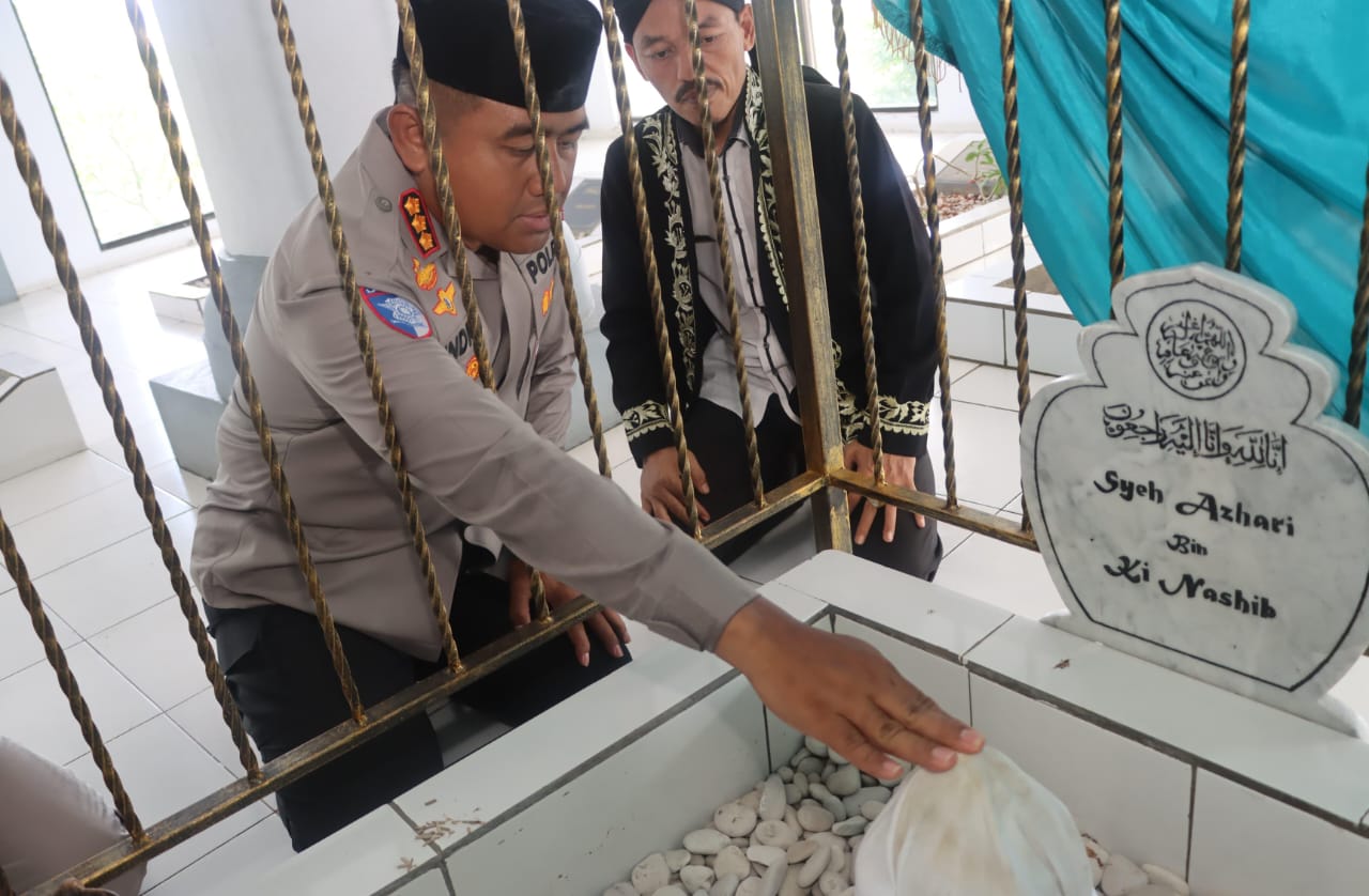 Kapolresta Tangerang Kombes Pol Andi Muhammad Indra Waspada Amirullah mengawali tugas di hari pertamanya memimpin Polresta Tangerang dengan berziarah ke makam Raden Aria Wangsakara, di Lengkong Kulon, Kecamatan Pagedangan, Kabupaten Tangerang, Rabu (9/7/2025).