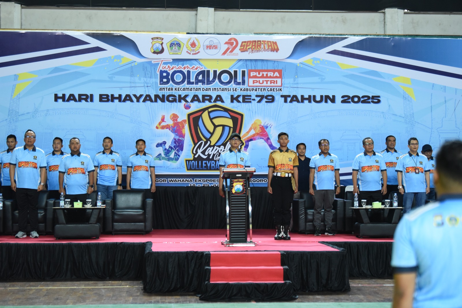 GRESIK – Sorak sorai penuh semangat menggema di Gedung Wahana Ekspresi Poesponegoro (WEP) II Gresik pada Jumat (18/7/2025) sore, saat Turnamen Bola Voli Kapolres Gresik Cup 2025 resmi dibuka. Ajang bergengsi ini menjadi bagian dari rangkaian peringatan Hari Bhayangkara ke-79 dengan mengusung tema “POLRI UNTUK MASYARAKAT”.