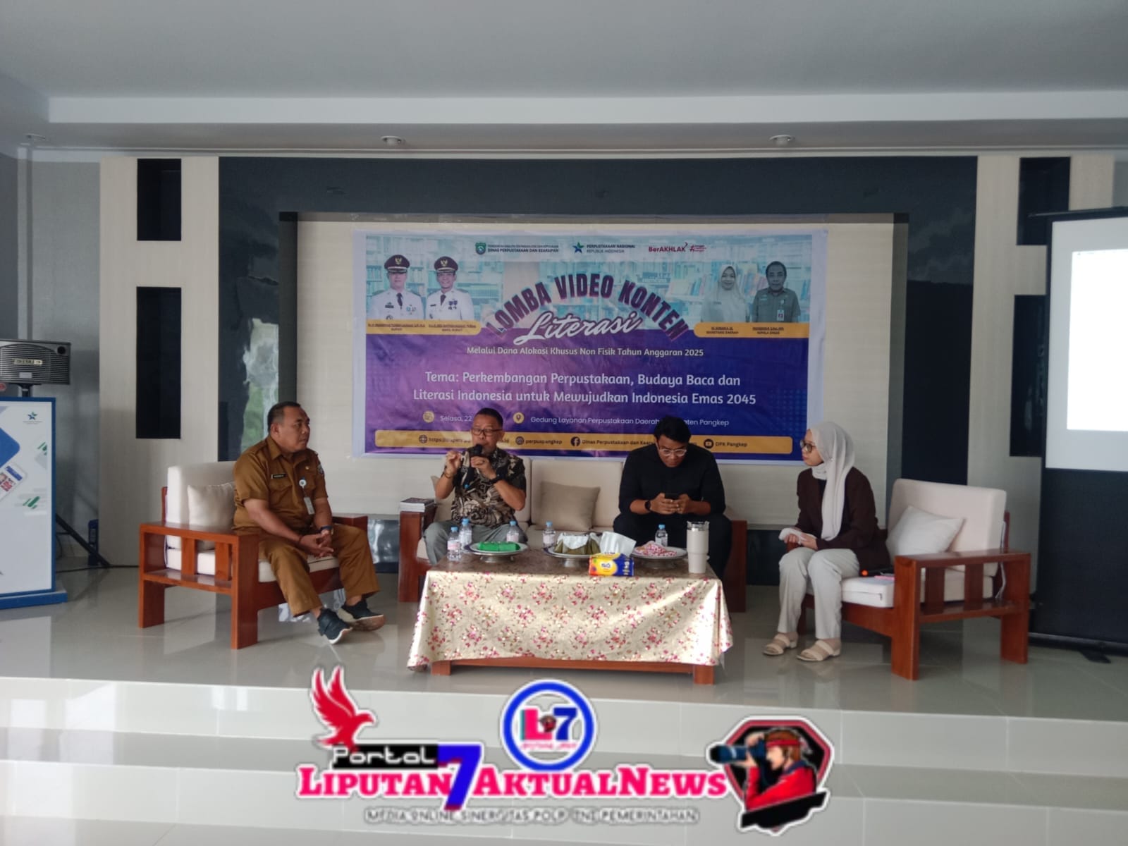 Liputan7aktual.com, Pangkep – Dinas Perpustakaan Dan Kearsipan Kabupaten Pangkep, Mengadakan Kegiatan Lomba Video Konten Literasi, Dengan Tema : Perkembangan Perpustakaan, Budaya Baca Dan Literasi Indonesia Untuk Mewujudkan Indonesia Emas 2045, Bertempat Diruang Pertemuan Kantor Dinas Perpustakaan Dan Kearsipan Jalan Terminal Baru Sambung Jawa Kelurahan Samalewa Kecamatan Bungoro Kabupaten Pangkep, Selasa, 22 Juli 2025.