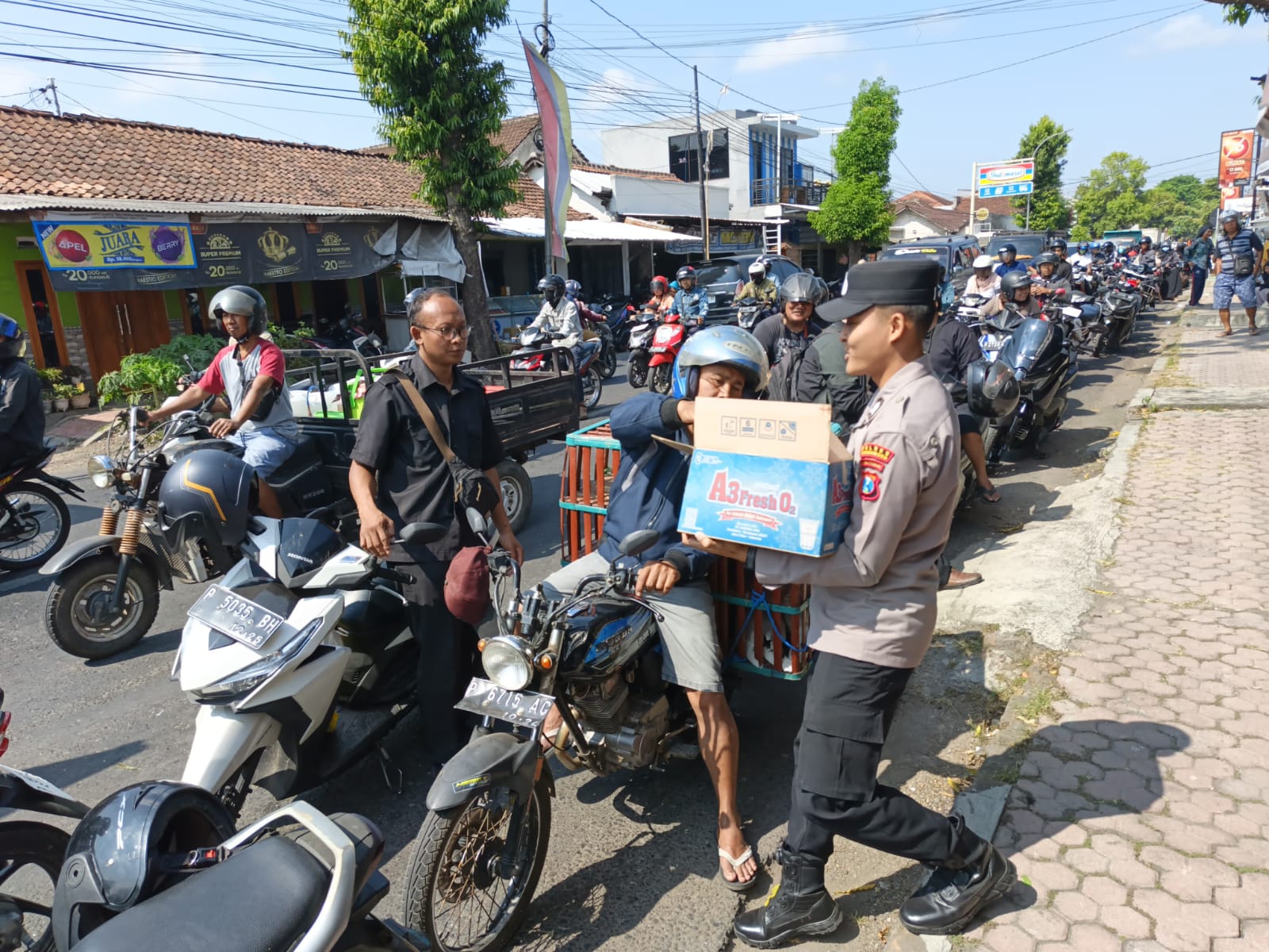 “Pembagian air minum ini adalah gestur kecil kami untuk membantu meringankan rasa haus dan lelah mereka,” ungkap AKP Didik.