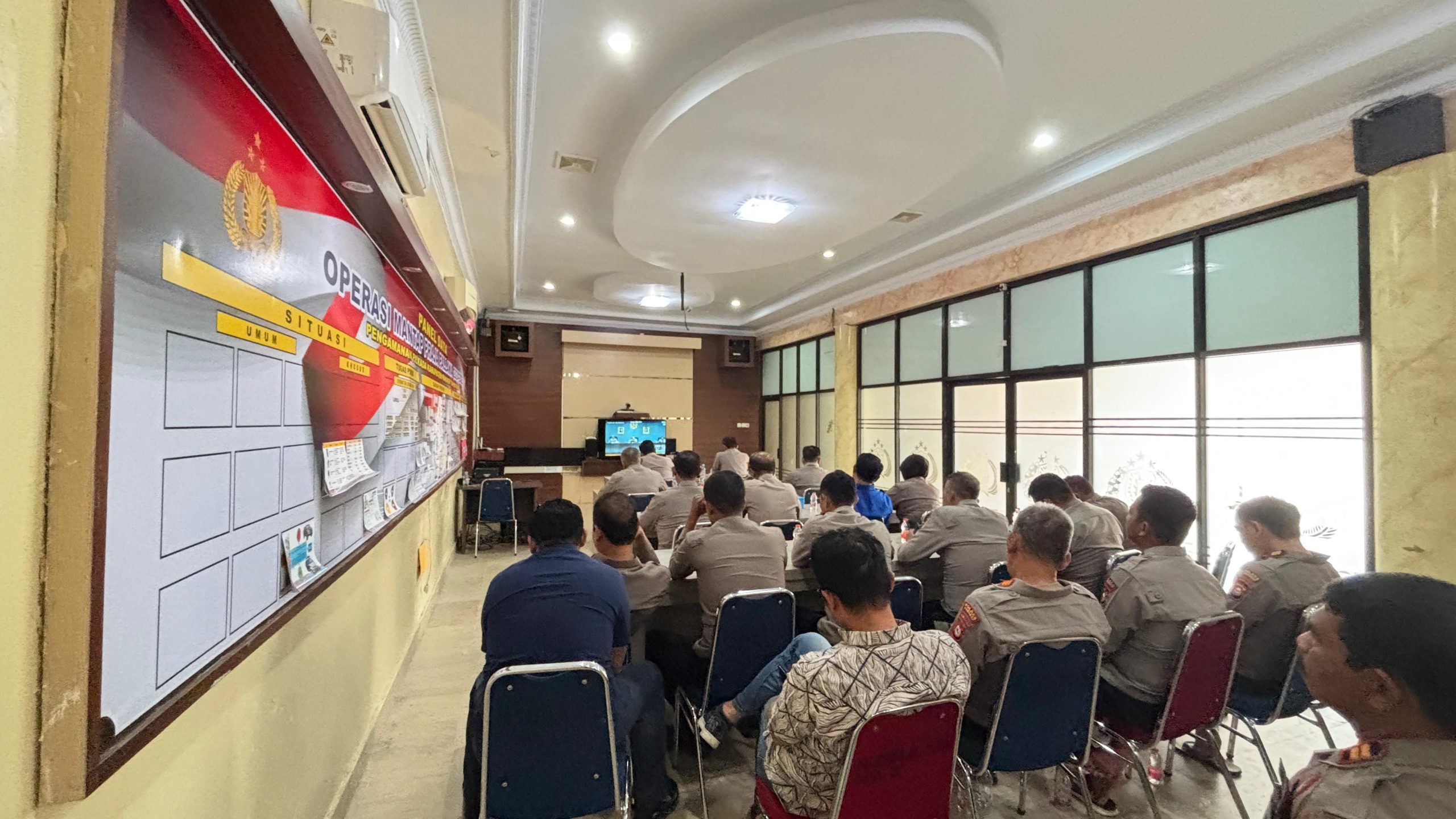 Liputan7aktual.com, Pangkep – Kamis, 31 Juli 2025, pukul 15.00 WITA, bertempat di Ruang Vicon Mapolres Pangkep, Kapolres Pangkep AKBP M. Husni Ramli, S.I.K., M.H., M.Tr.Opsla mengikuti kegiatan Video Conference (Vicon) dalam rangka Analisa dan Evaluasi (Anev) Situasi Keamanan dan Ketertiban Masyarakat (Sitkamtibmas) terkini yang dipimpin langsung oleh Kepala Kepolisian Republik Indonesia (Kapolri) Jenderal Polisi Listyo Sigit Prabowo dan didampingi Pejabat Utama (PJU) Mabes Polri.
