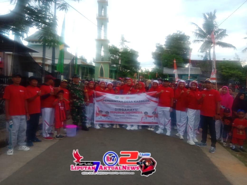 Pangkep, liputan7aktuak.com – Pemerintah Desa Kassiloe mengadakan jalan santai dalam rangka memperingati Hari Ulang Tahun Kemerdekaan Republik Indonesia Ke-80, start dan finish didepan rumah Kepala Desa Kassiloe di Kampung Borong-Borong Desa Kassiloe Kecamatan Labakkang Kabupaten Pangkep, Minggu, 24 Agustus 2025.