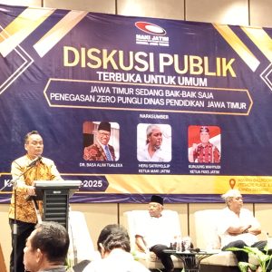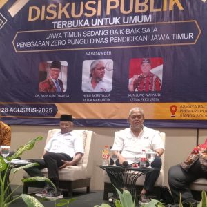 Sidoarjo, liputan7aktual.com – Masyarakat Anti Korupsi (MAKI) Jawa Timur menggelar Diskusi Publik bertajuk “Jawa Timur Sedang Baik-baik Saja, Penegasan Zero Pungli Dinas Pendidikan Jawa Timur” di Premiere Place, Jalan Juanda Sidoarjo, Kamis (28/8/2025).