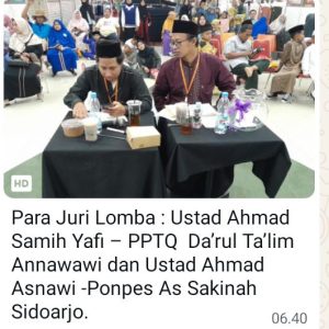 Dewan juri berasal dari kalangan ustadz yang berkompeten, di antaranya Ustadz Ahmad Samih Yafi dari PPTQ Darul Ta’lim Annawawi, serta Ustadz Ahmad Asnawi dari Ponpes As Sakinah Sidoarjo.