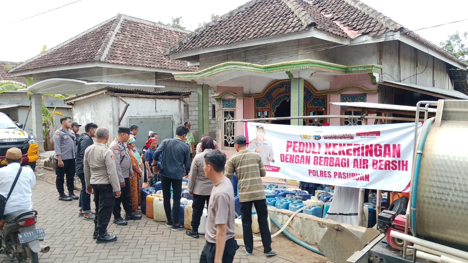 Bantuan tersebut diberikan untuk membantu masyarakat yang terdampak kekeringan. Kegiatan berlangsung mulai pukul 14.30 hingga 16.20 WIB dengan situasi aman dan kondusif.