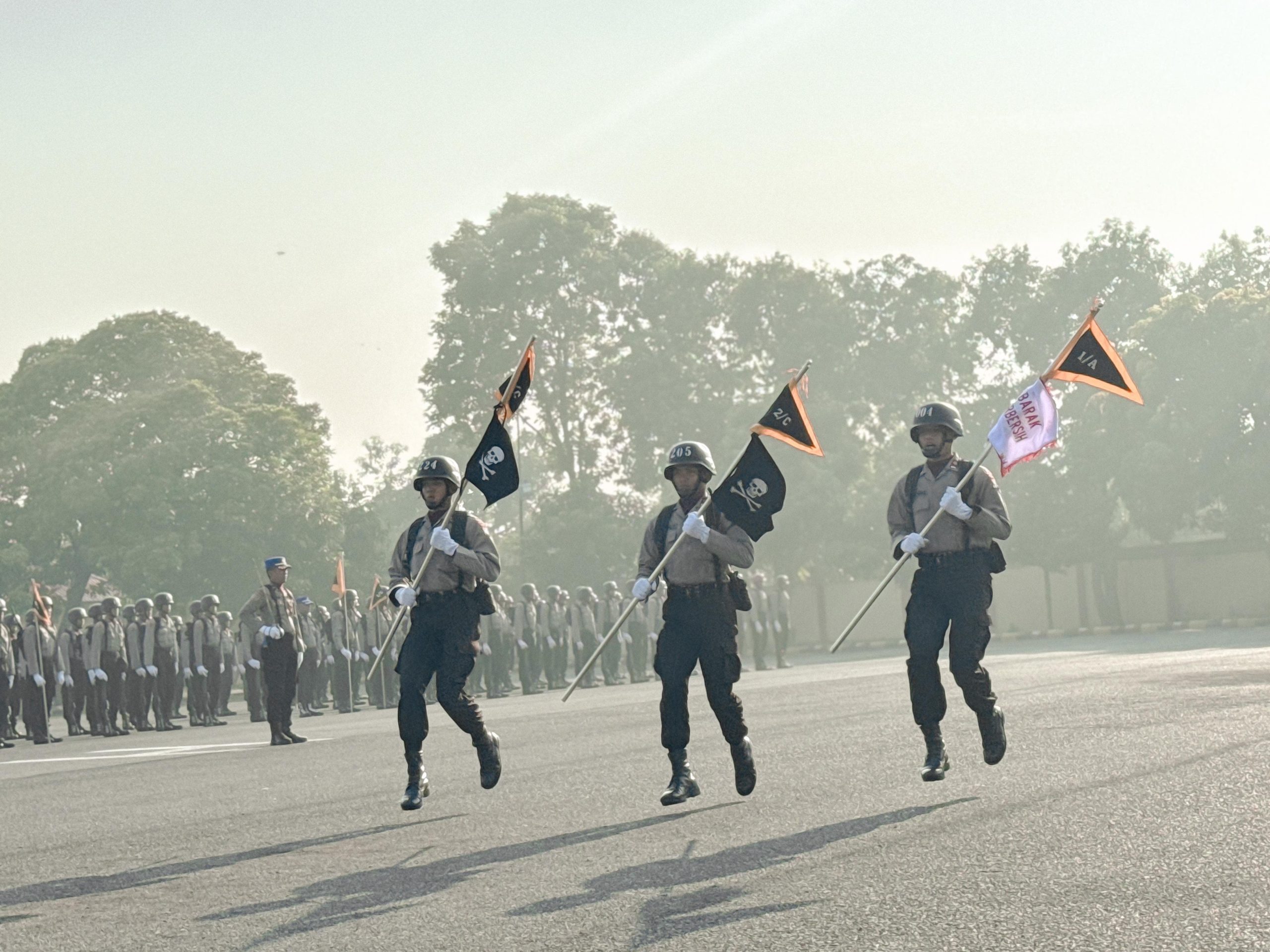 Upacara yang berlangsung khidmat tersebut dipimpin langsung oleh Kepala SPN Polda Jatim, Komisaris Besar Polisi (Kombes Pol) Agus Wibowo, S.I.K. Turut hadir dalam upacara seluruh Perangkat Pengasuh Siswa Diktukba, yang konsisten mendampingi dan membentuk calon Bhayangkara negara tersebut.