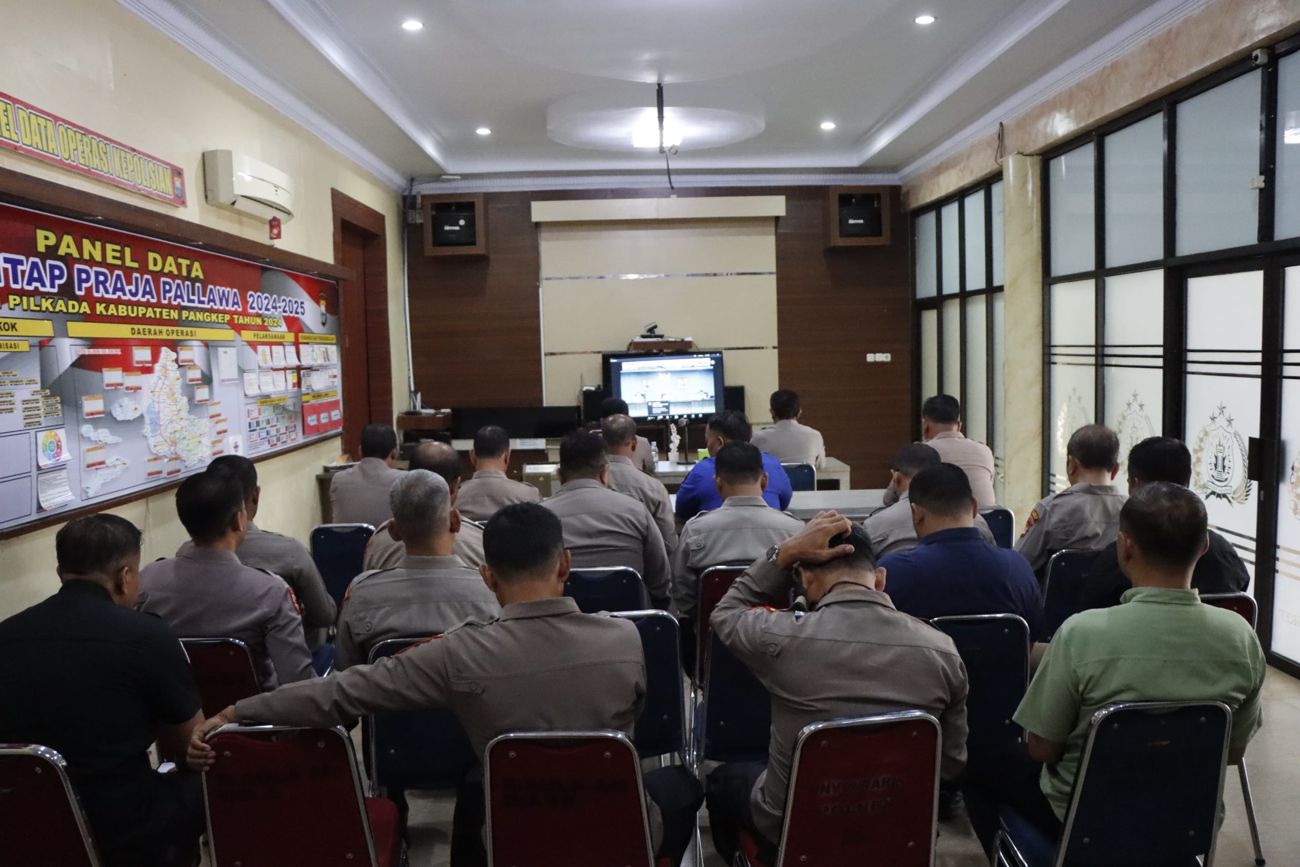 Kegiatan yang berlangsung di Aula Andi Mappe Mapolres Pangkep dilaksanakan secara serentak oleh Mabes Polri dan diikuti oleh seluruh Polda serta Polres jajaran di Indonesia. Fokus utama pembahasan dalam Vicon kali ini adalah kesiapan pengamanan unjuk rasa (Unras) dalam rangka memperingati satu tahun Pemerintahan Kabinet Merah Putih.