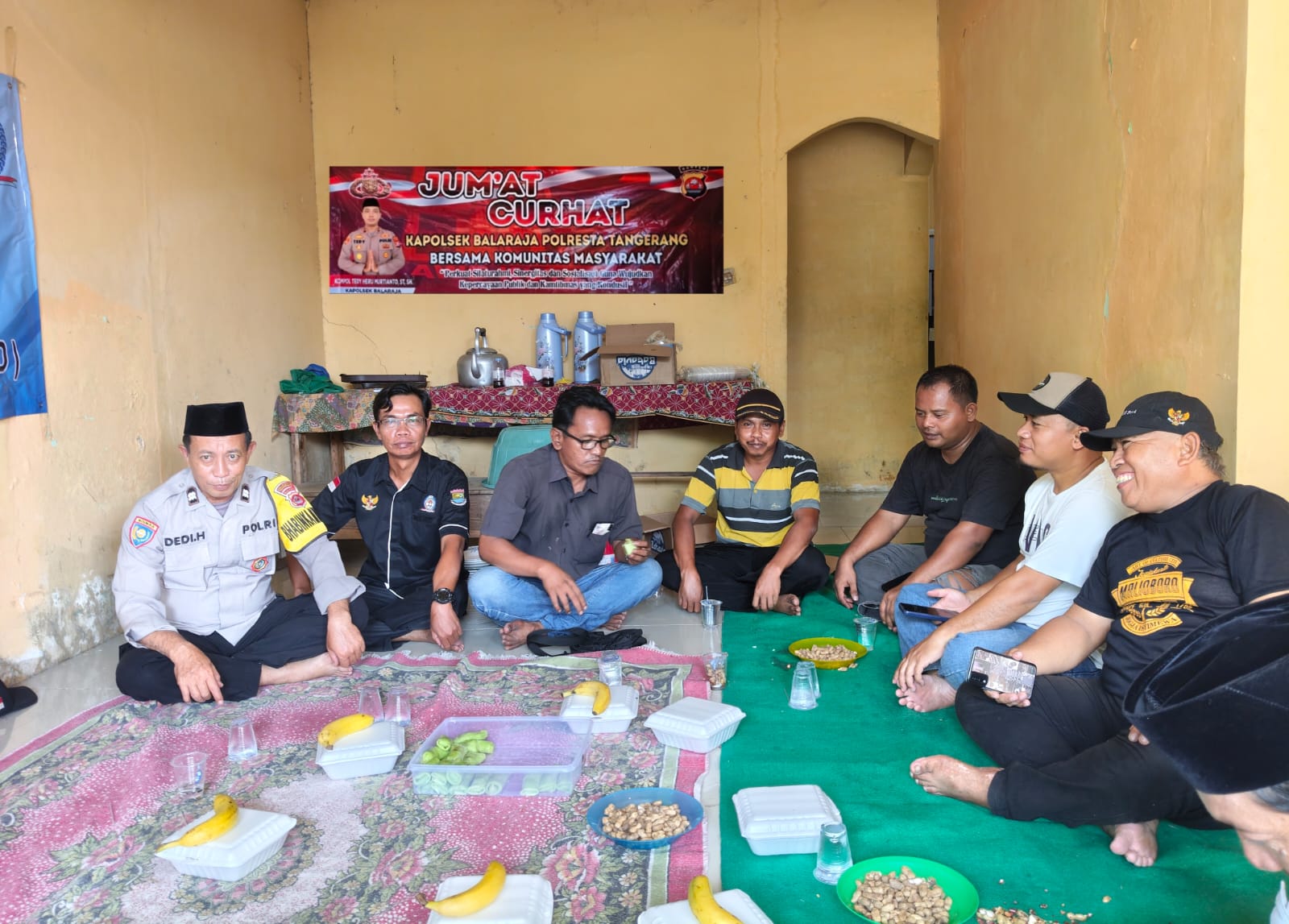 Aiptu Dedi H. Bhabinkamtibmas Polsek Balaraja memulai sesi curhat dengan mengajak masyarakat Binaan untuk berbagi cerita atau keluh kesah yang mereka alami. Masyarakat diminta untuk berani membuka diri dan mengungkapkan segala permasalahan yang ingin mereka sampaikan.