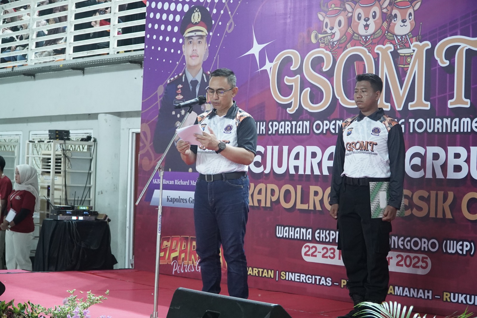 GRESIK – Gelanggang Olahraga (GOR) Wahana Ekspresi Poesponegoro, Gresik, menjadi saksi kemeriahan ratusan peserta dari berbagai sekolah dan komunitas marching band yang berkumpul dalam Upacara Pembukaan Lomba Marching Band Kapolres Gresik Cup 2025, Sabtu (22/11/2025). Sejak pagi, suasana penuh semangat, warna-warni kostum, dan dentuman perkusi yang menggema di arena.