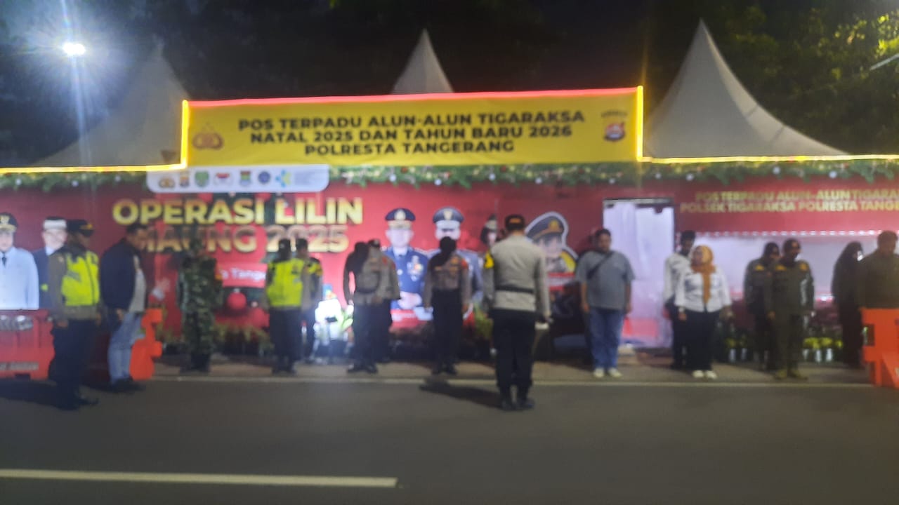 turut Hadir Pos Terpadu Alun alun Tigaraksa Natal 2025 Dan Tahun Baru 2026 Polresta Tangerang, Iptu Rolling, Ketua Pokdarkamtibmas Bhayangkara sektor Tigaraksa Joy Suhendi, Ibu Muni, Nurwenda, beserta jajaran Polresta tangerang dan polsek Tigaraksa Pos Terpadu Alun alun Tigaraksa Natal 2025 Dan Tahun Baru 2026 Polresta Tangerang yang tempat di alun-alun pusat pemerintahan Kabupaten Tangerang dan dalam pantauan kami situasi aman kondusif ” ujarnya. Joy Suhendi Ketua pokdarkamtibmas Bhayangkara sektor Tigaraksa.