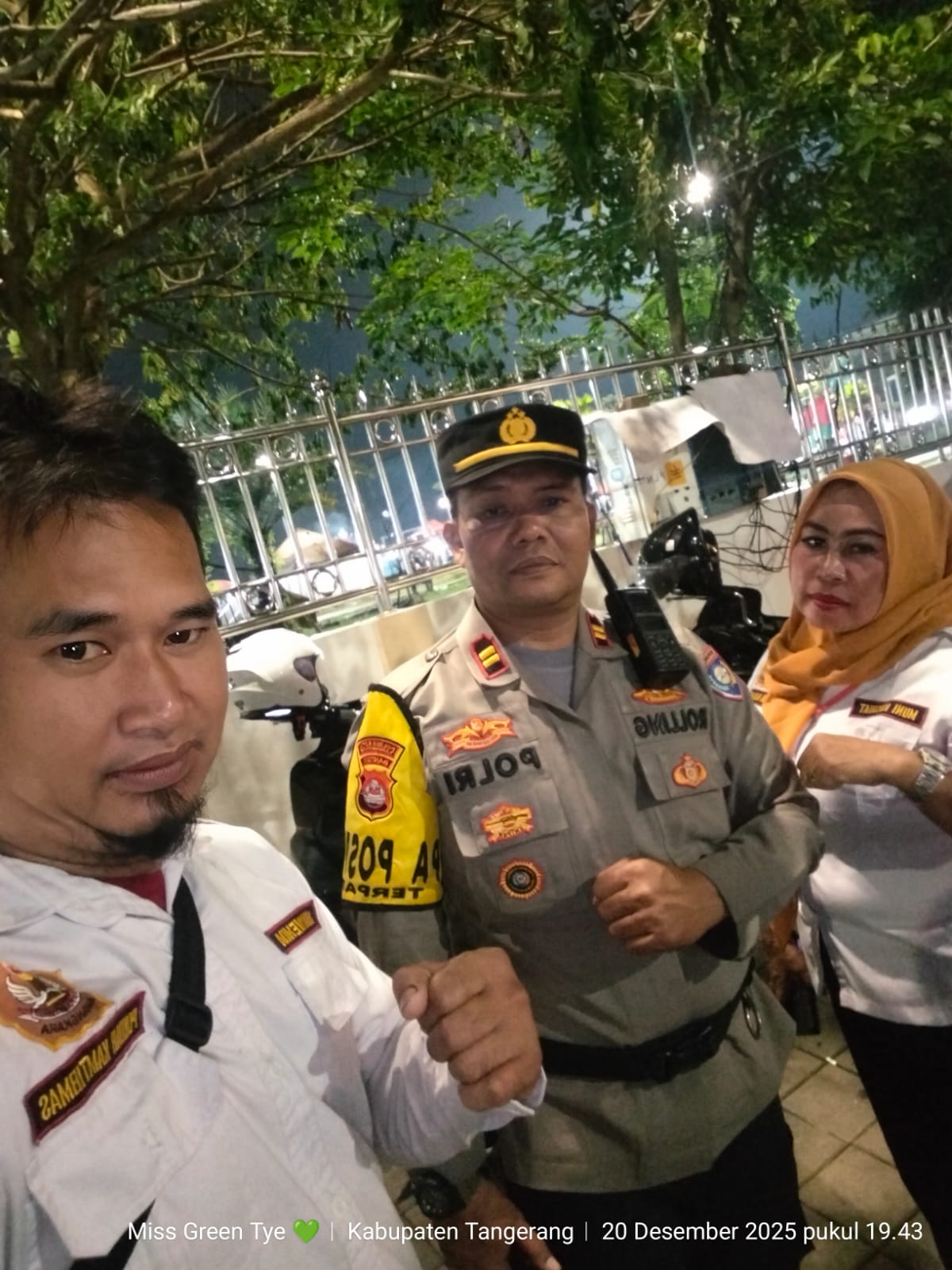 Pokdarkamtibmas Bhayangkara sektor Tigaraksa yang Didampingi personil Polsek Tigaraksa Iptu Rolling dan jajaran Pos Terpadu Alun alun Tigaraksa Natal 2025 Dan Tahun Baru 2026 Polresta Tangerang dan juga Pimpinan Pokdar Kamtibmas Bhayangkara resor kota Tangerang Ujang Nurjaya mengutus Pokdar Kamtibmas Bhayangkara Sektor Polsek Tigaraksa Joy Suhendi bersama ibu muni dan Nurwenda untuk Partisipasi Pos Terpadu Alun alun Tigaraksa Natal 2025 Dan Tahun Baru 2026 Polresta Tangerang