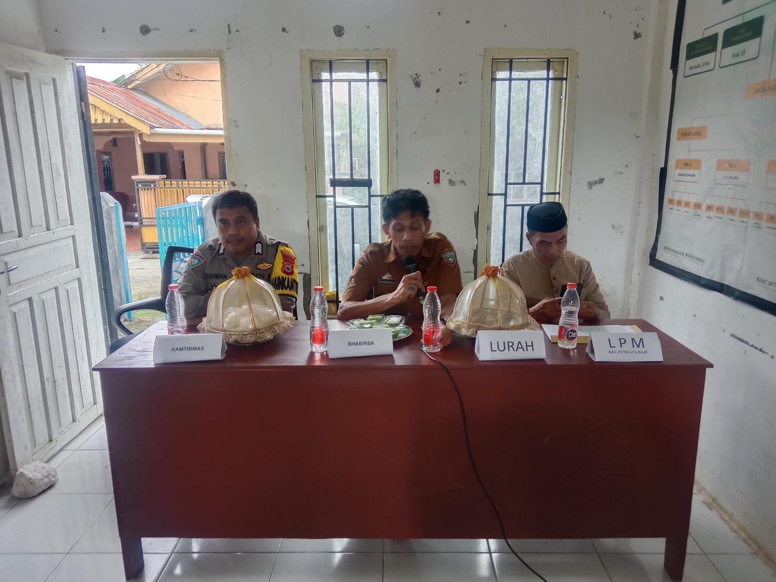 Sambutan Bhabinkamtibmas Kelurahan Pundata Baji Bripka Abd Rahman, hari ini kita menghadiri Pra Musrenbang, dan kami sampaikan melalui kesempatan ini pada peserta rapat mari kita menjaga keamanan ketertiban masyarakat (Kamtibmas).