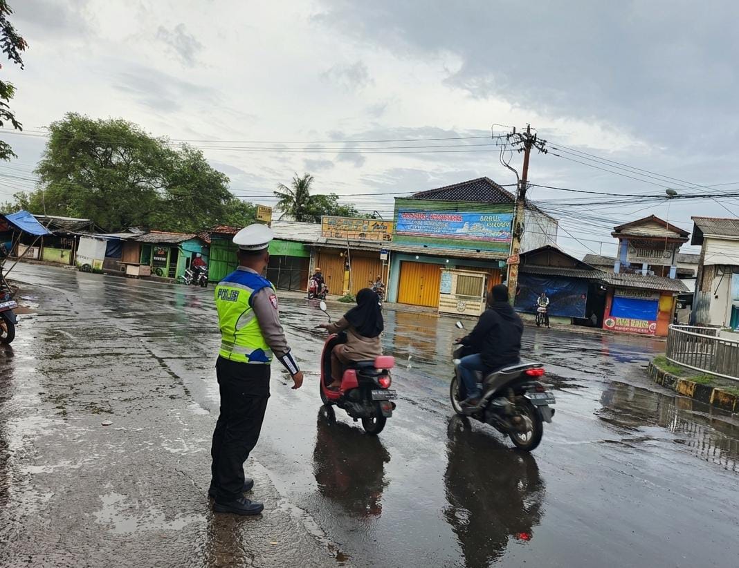 The activity began at 6:30 a.m. WIB and continued until completion, taking place at the Tugu Cangkir intersection, Kronjo District, Tangerang Regency. The strong point operation was conducted by traffic unit personnel of Kronjo Police, namely Traffic Unit Head Aipda Indra S along with Briptu Mubdi.