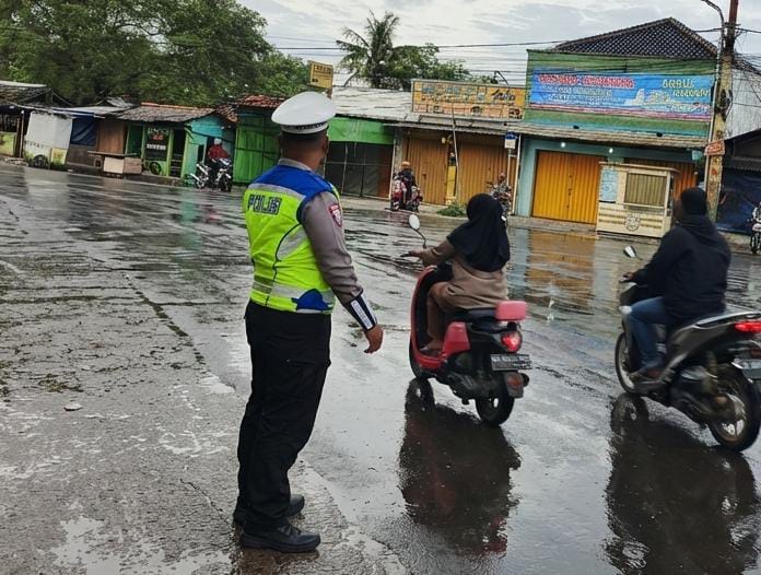 The activity took place from 6:30 a.m. until completion at the Tugu Cangkir intersection, Kronjo District, Tangerang Regency. The strong point operation was conducted by personnel from the Kronjo Police Traffic Unit, namely Traffic Unit Head Aipda Indra S together with Briptu Mubdi.