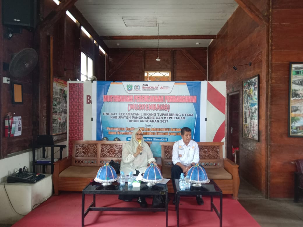 Pangkep liputan7aktual.com – Pemerintah Kecamatan Liukang Tupabbiring Utara mengadakan Musyawarah Rencana Pembangunan (Musrenbang) Tahun Anggaran 2027, dengan Tema “Peningkatan Kualitas SDM Dan Infrastruktur Berkelanjutan Untuk Mewujudkan Pertumbuhan Ekonomi Yang Inklusif”. Bertempat di Gedung Bela Negara Kelurahan Padoang-Doangan Kecamatan Pangkajene Kabupaten Pangkep, Rabu, 28 Januari 2026.