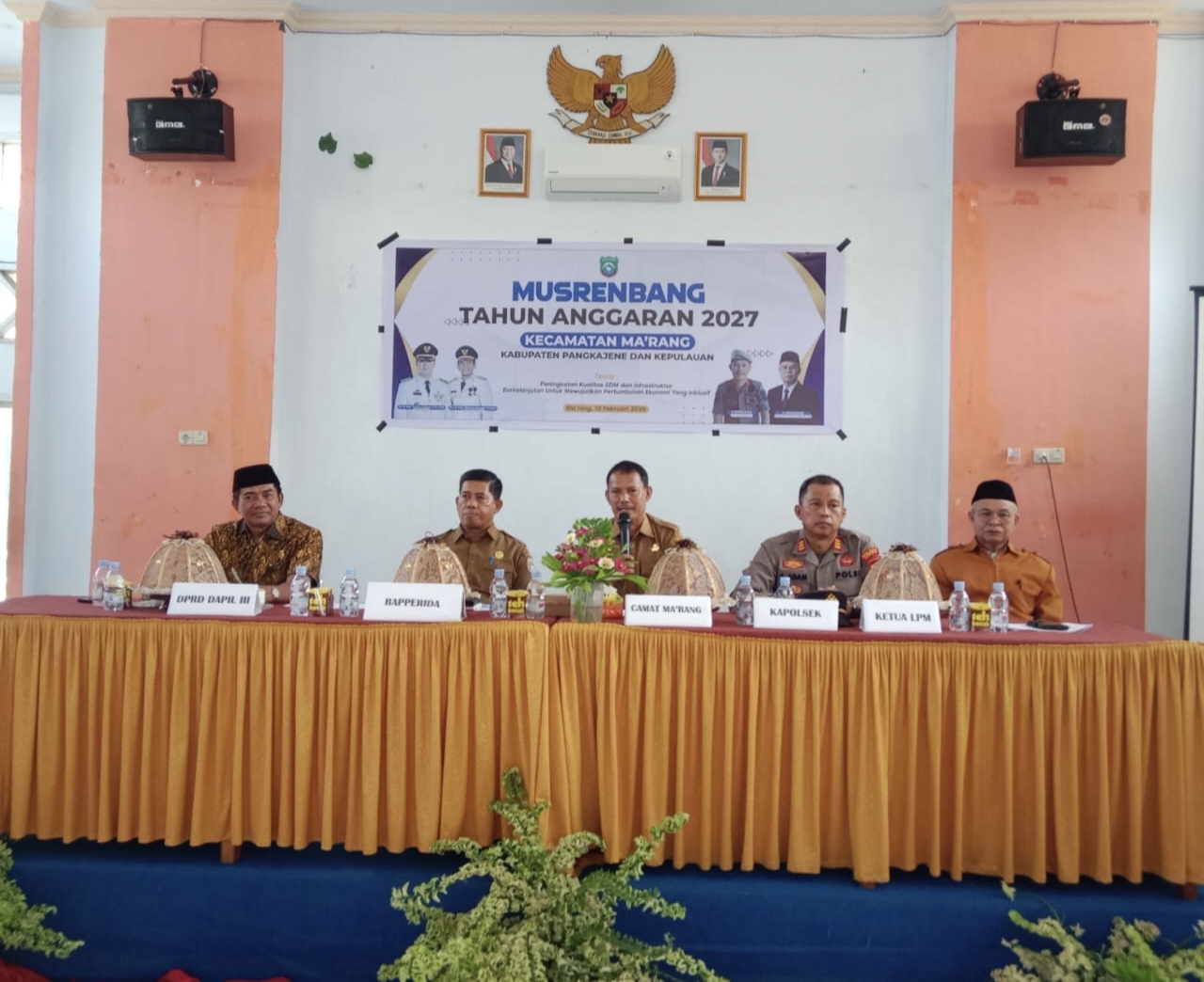 Pangkep liputan7aktual.com – Pemerintah Kecamatan Ma’rang mengadakan Musyawarah Rencanan Pembangunan (Musrenbang) Tahun Anggaran 2027, dengan Tema “Peningkatan Kualitas SDM Dan Infrastruktur Berkelanjutan Untuk Mewujudkan Pertumbuhan Ekonomi Yang Inklusif”. Bertempat Di Aula Kantor Kecamatan Ma’rang Kelurahan Bonto-Bonto Kecamatan Ma’rang Kabupaten Pangkep, Selasa, 10 Januari 2026.