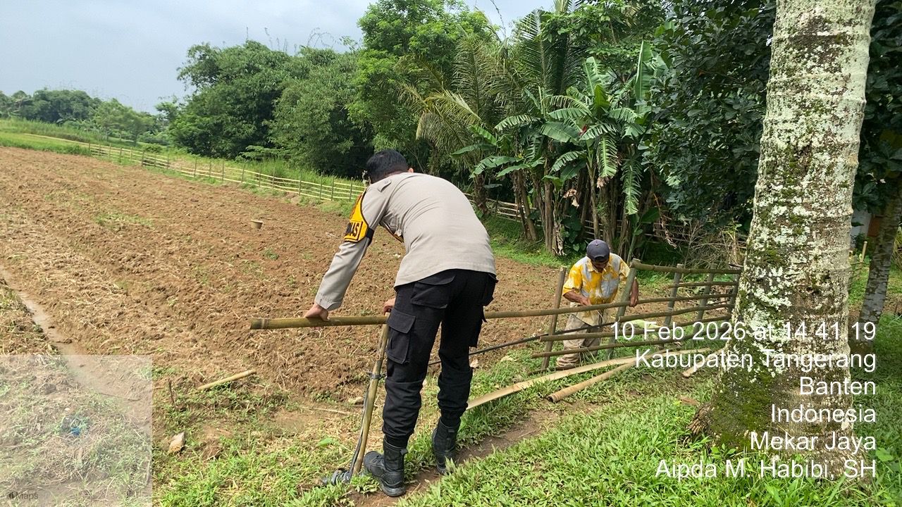 Tangerang, – Bhabinkamtibmas Desa Mekar Jaya Polsek Panongan, Polresta Tangerang, Polda Banten, Aipda M. Habibi, SH melakukan pengecekan lahan tanam jagung hibrida Kuartal IV di Kampung Serdang, Desa Mekar Jaya, Kecamatan Panongan, Kabupaten Tangerang, Selasa (10/2/2026) sore. Kegiatan ini dilakukan sebagai bagian dari dukungan Polri terhadap program ketahanan pangan nasional serta persiapan penanaman jagung hibrida yang dijadwalkan pada 15 Februari 2026.