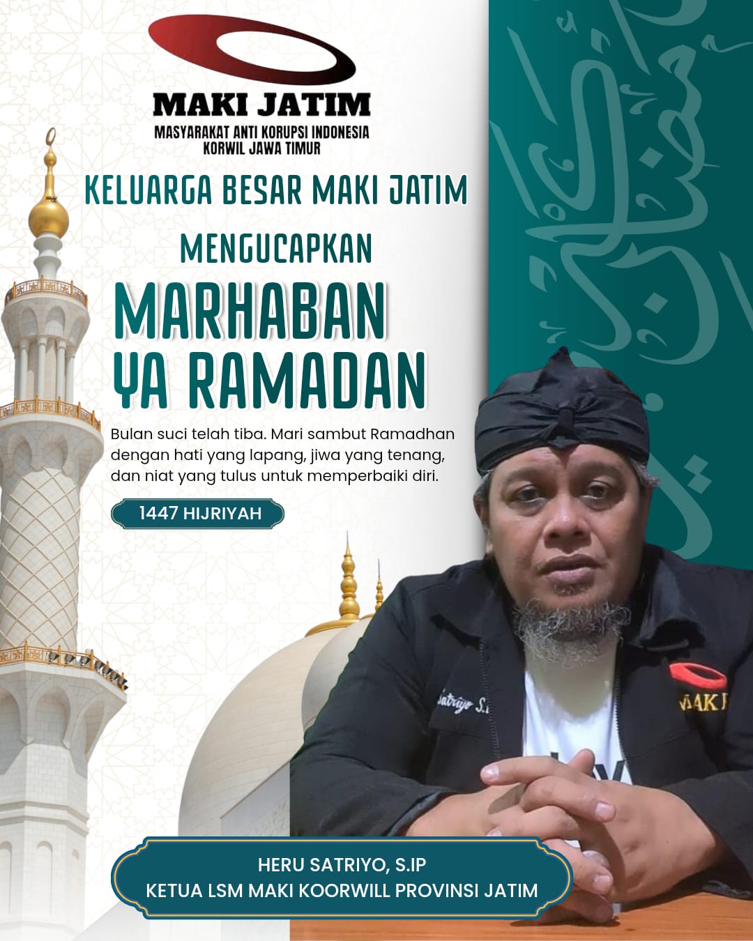 Dengan semangat “Marhaban Ya Ramadan 1447 Hijriah”, MAKI Jatim optimistis nilai-nilai spiritual yang diperkuat selama bulan suci dapat menjadi fondasi kokoh dalam membangun Jawa Timur yang bersih, berintegritas, dan berkeadilan. (Wiwik)