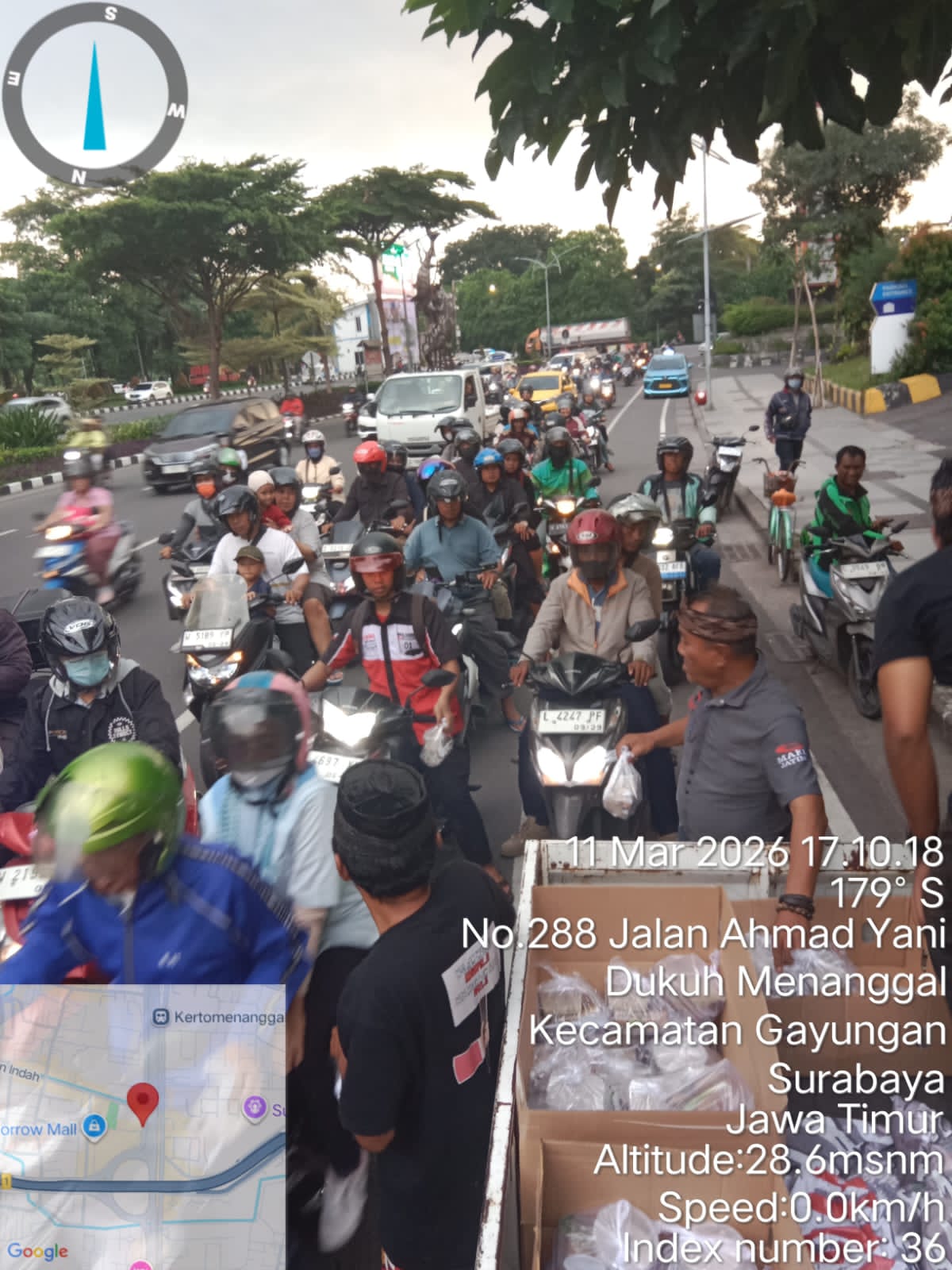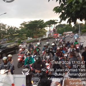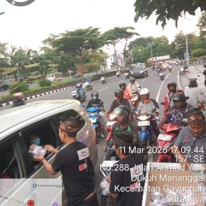 Para relawan dari Tim Takjil MAKI Jatim tampak turun langsung ke jalan untuk membagikan paket takjil kepada para pengendara roda dua, pengemudi ojek online, hingga warga sekitar yang melintas di kawasan tersebut.