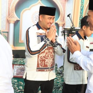 GRESIK – Dalam rangka memperingati Hari Raya Idulfitri 1 Syawal 1447 Hijriah, Polres Gresik menggelar Sholat Idulfitri bersama masyarakat di halaman Masjid Al-Aziz Mapolres Gresik, Sabtu (21/3/2026). Kegiatan ini menjadi wujud nyata dalam mempererat silaturahmi serta membangun kedekatan antara Polri dan masyarakat.