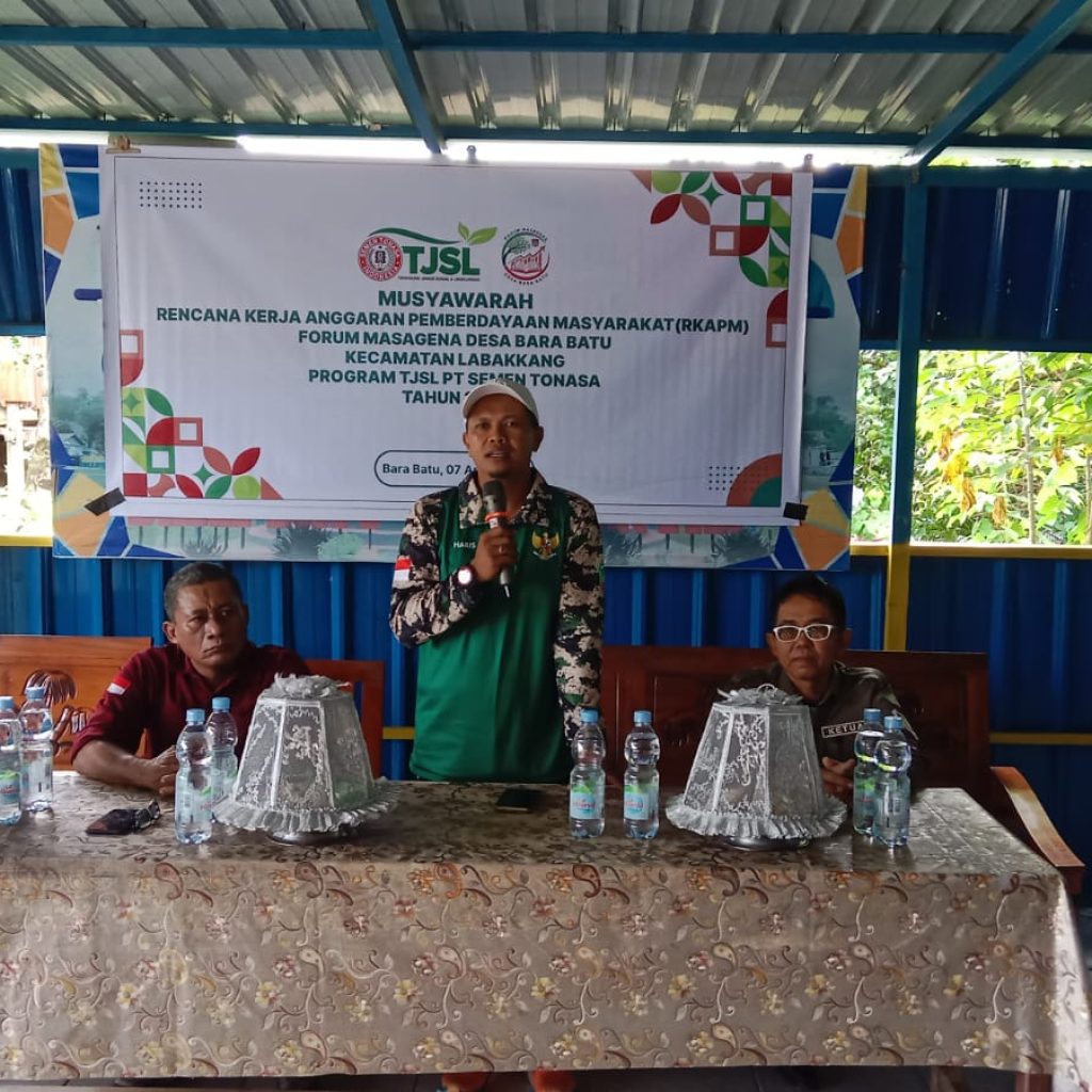 Selamat pagi, para hadirin yang saya hormati. Saya mengucapkan terima kasih atas kehadiran kita semua dalam Musyawarah Rencana Kerja Anggaran Pemberdayaan Masyarakat (RKAPM) ini. Saya berharap kita dapat bekerja sama untuk meningkatkan kualitas hidup masyarakat Bara Batu melalui program TJSL Semen Tonasa Tahun 2026. Mari kita jadikan kesempatan ini untuk membahas dan merencanakan program yang dapat memberikan manfaat bagi masyarakat. (Abdullah Sangkala).