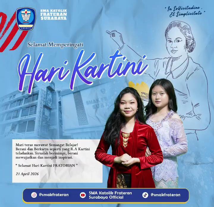 Surabaya, 21 April 2026 – Dalam rangka memperingati Hari Kartini yang jatuh pada Selasa (21/4/2026), Kepala SMAK Frateran Surabaya, Fr. William Satel Sura BHK, S.Pd., M.M., bersama seluruh guru, staf, dan karyawan menyampaikan ucapan selamat Hari Kartini kepada seluruh perempuan Indonesia, khususnya para pelajar yang tengah menempuh pendidikan.