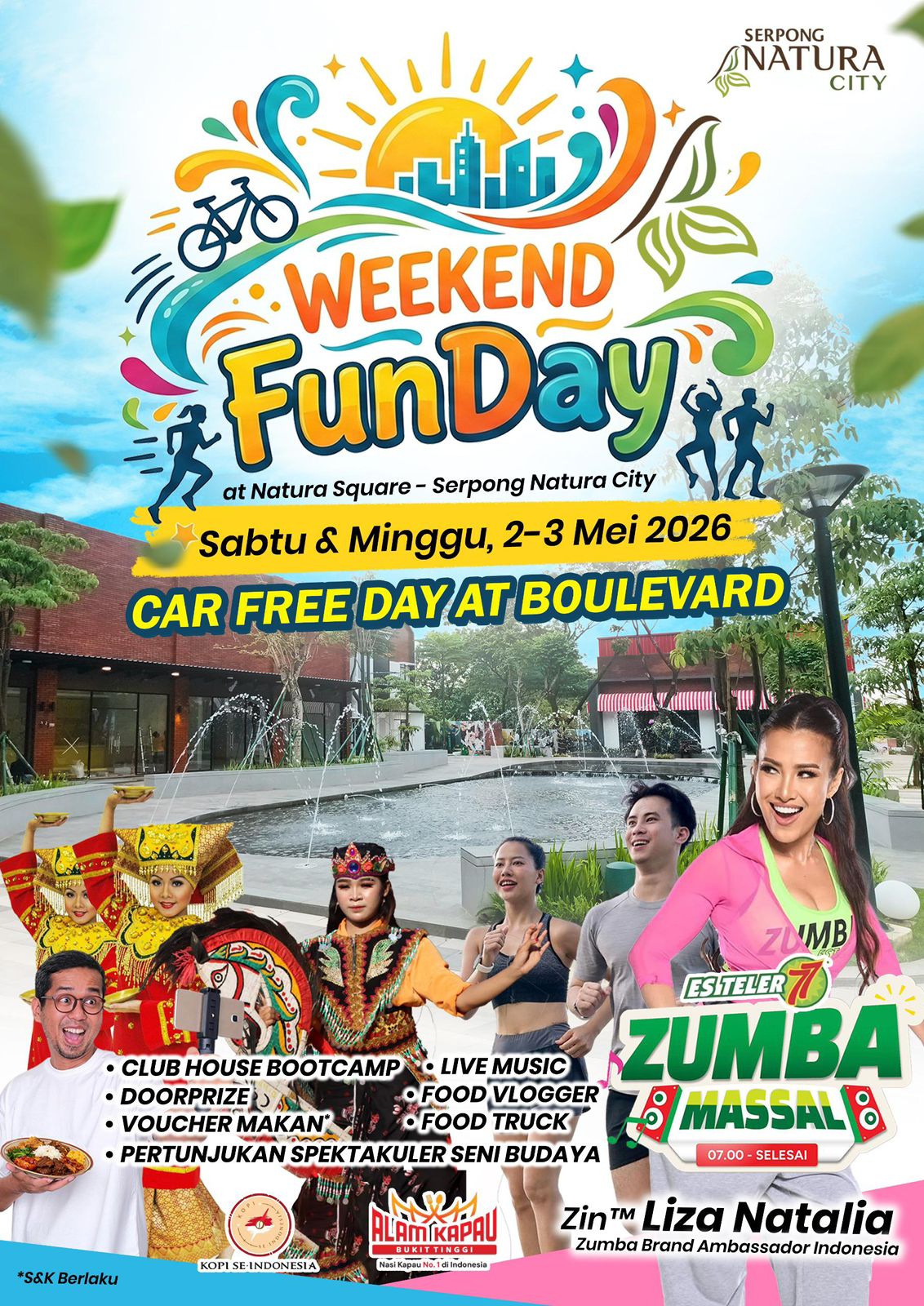 Nah, buat kalian yang penasaran dengan geliat dan serunya Serpong Natura City, pada Sabtu 2 dan Minggu 3 Mei 2026, bakal ada event keren yang bisa menjadi alternatif wisata keluarga. Pada tanggal 2 Mei, merupakan opening Alam Kapau Bukittinggi. Event ini dikemas dalam Weekend Fun Day, dengan konsep Car Free Day At Boulevard. Event ini juga akan menghadirkan pertunjukan spektakuler pagelaran seni budaya. Diantaranya adalah kesenian tradisi dari Sumatera Barat serta seni kuda lumping khas DI. Yogyakarta. Selain itu juga bakal ada live music, food truck, food vlogger, club house boot camp, serta door prize dan voucher makan gratis. Event ini dibuka untuk umum.
